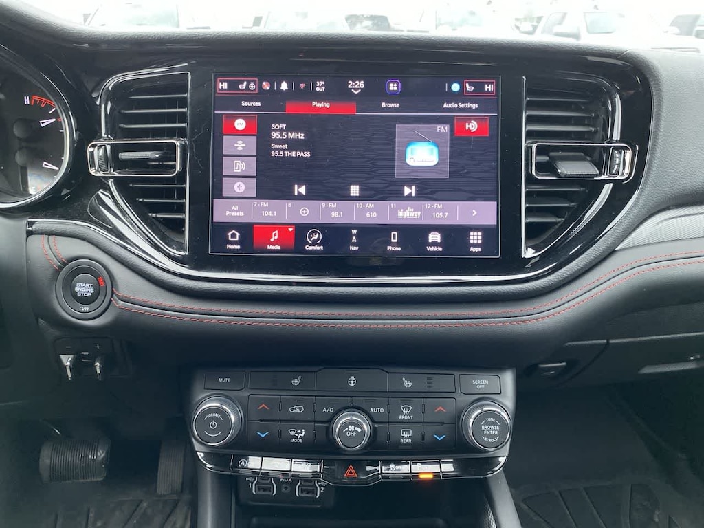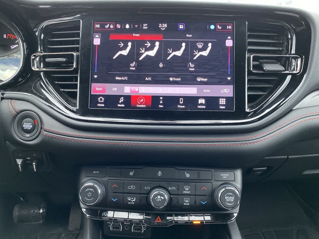 BLACKTOP PACKAGE GT Gloss Black Badging, Wheels: 20 x 8.0 Black Noise Aluminum, Integrated Roof Rail Crossbars, Satin Black Dodge Tail Lamp Badge, Black Roof Rails, Pirelli Brand Tires, Gloss Black Badges, TRAILER TOW GROUP IV Rear Load Leveling Suspension, Trailer Brake Control, 7 & 4 Pin Wiring Harness, Heavy Duty Engine Cooling, Class IV Receiver Hitch, Blind Spot w/Trailer Detection, TRANSMISSION: 8-SPEED AUTOMATIC (850RE) (STD), ENGINE: 3.6L V6 24V VVT UPG I W/ESS (STD). Dodge GT with Vapor Gray exterior and Black interior features a V6 Cylinder Engine with 295 HP at 6400 RPM*.