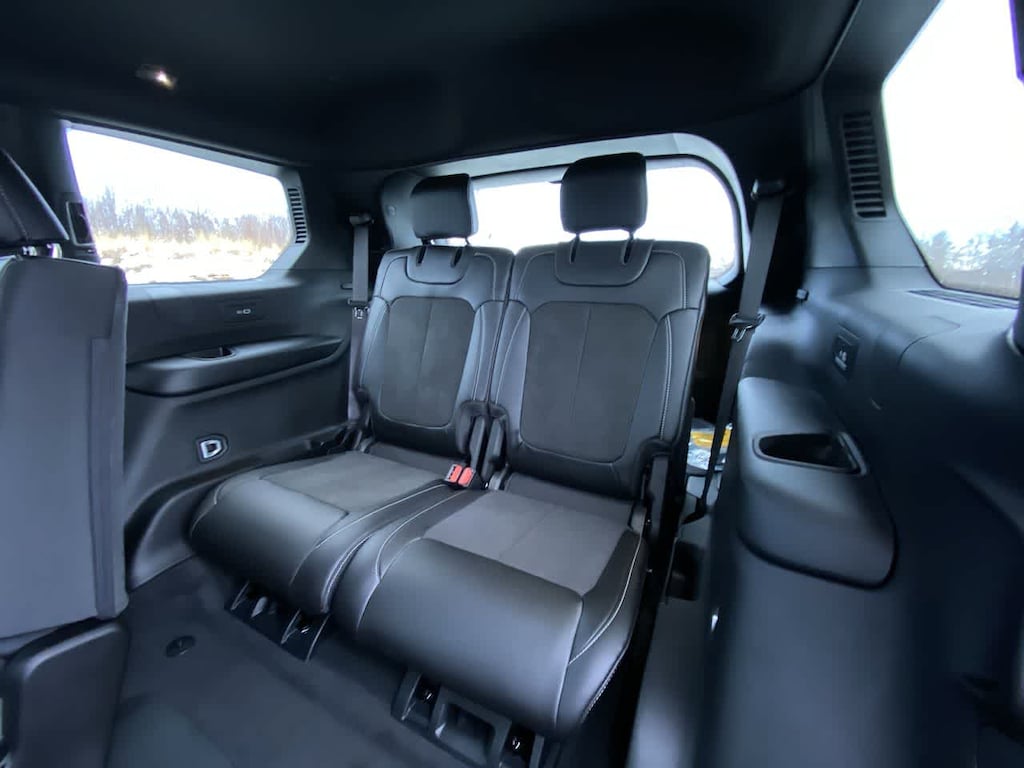 Third-row seat upholstery Simulated suede and leatherette rear seat upholstery