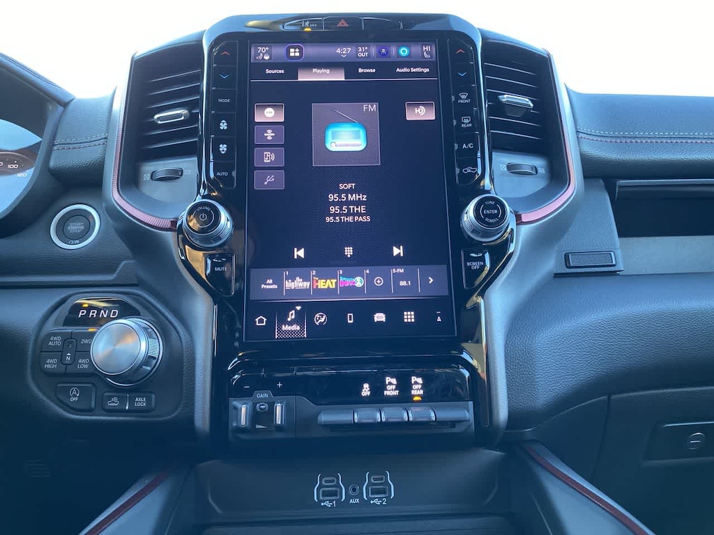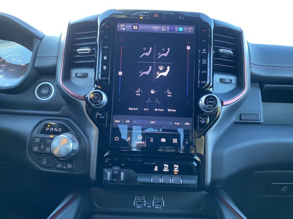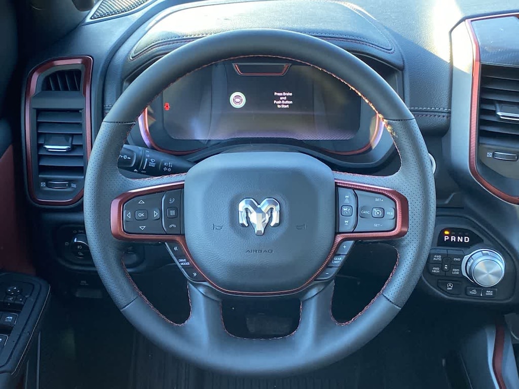 BED UTILITY GROUP MOPAR Spray In Bedliner, MOPAR 4 Adjustable Cargo Tie-Down Hooks, Exterior 115V AC Outlet, REBEL LEVEL 1 EQUIPMENT GROUP Rear Window Defroster, Wireless Charging Pad, Power Adjustable Pedals, Exterior Mirrors w/Supplemental Signals, Exterior Mirrors Courtesy Lamps, Auto Power-Folding Mirrors, Remote Tailgate Release, Auto Dim Exterior Driver Mirror, Black Premium Power Mirrors, TRANSMISSION: 8-SPEED AUTOMATIC (8HP75) (STD). Ram Rebel with Bright White Clearcoat exterior and Red/Black interior features a Straight 6 Cylinder Engine with 420 HP at 5200 RPM*.