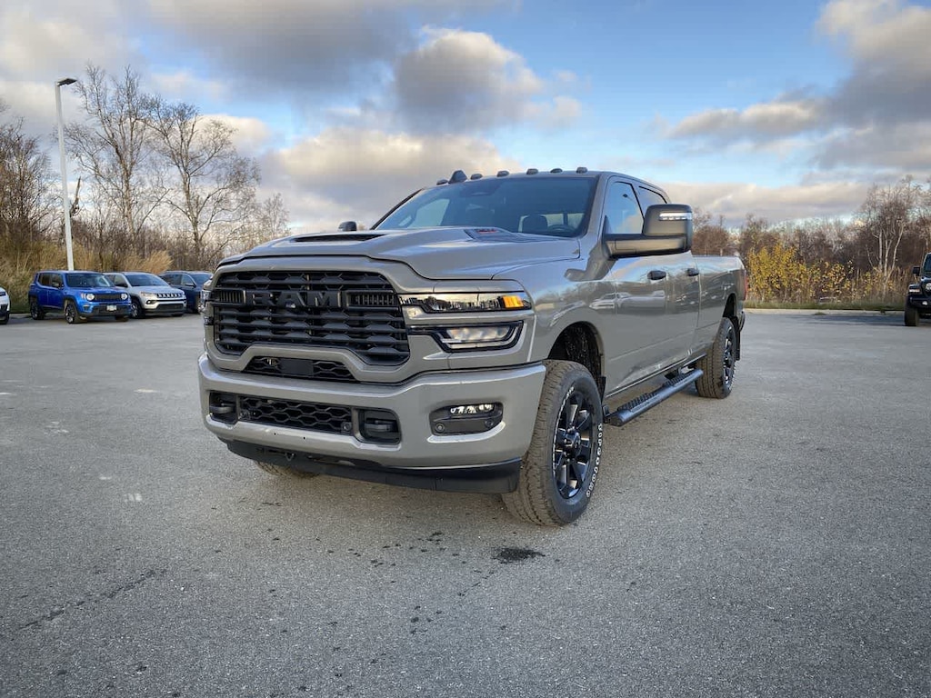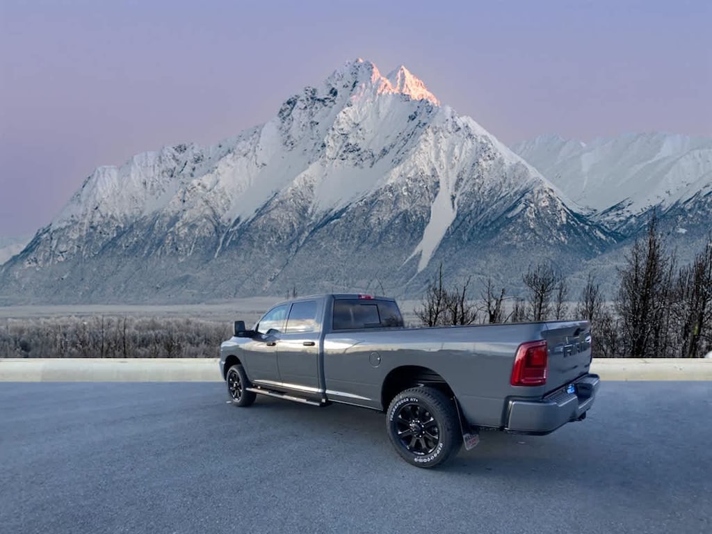 SAFETY GROUP Active Lane Management System, Auto High Beam Headlamp Control, Blind Spot & Cross Path Detection, LED Tail Lamps, Red Tail Lamp Bezels, Cluster 7.0 TFT Color Display, Rain Sensitive Windshield Wipers, Rear View Auto Dim Mirror, Drowsy Driver Detection, Steering Wheel Mounted Audio Controls, Luxury Steering Wheel, Traffic Sign Recognition, Adaptive Steering System, TRADESMAN LEVEL 1 EQUIPMENT GROUP Convenience Group, Emergency Vehicle Alert System (EVAS), 12 Touchscreen Display, Anti-Spin Differential Rear Axle, Exterior 115V AC Outlet, Alexa Built-In, Disassociated Touchscreen Display, 115V Auxiliary Front Power Outlet, Rear View Auto Dim Mirror, Rear Power Sliding Window, Tinted Acoustic Windshield Glass, GPS Navigation, SiriusXM w/360L, Connected Travel & Traffic Services, Off-Road Info Pages, Trailer Tow Pages, 400W Inverter, HD Radio, Radio: Uconnect 5 Nav w/12.0 Display, Air Conditioning ATC w/Dual Zone Control, BED CONVENIENCE GROUP MOPAR Spray In Bedliner, LED Bed Lighting, TRANSMISSION: 8-SPEED AUTO (8HP75-LCV) (STD), ENGINE: 6.4L V8 HEMI HD (STD), BLACK, CLOTH 40/20/40 BENCH SEAT, QUICK ORDER PACKAGE 2UC BLACK EXPRESS Engine: 6.4L V8 HEMI HD, Transmission: 8-Speed Auto (8HP75-LCV), Wheels: 20 x 8.0 Black Painted Aluminum, Auto Power-Folding Mirrors, Painted Front Bumper, Painted Rear Bumper, Exterior Mirrors w/Heating Element, MOPAR Black Tubular Side Steps, Mirror Running Lights, Body Color Grille-Surround, Carpet Floor Covering, Power-Adjustable Convex Aux Mirrors, Forward & Reverse Utility Lights, Power Heated Folding Telescopic Mirrors, Exterior Mirrors w/Supplemental Signals, Sport Performance Hood, Exterior Mirrors Courtesy Lamps, Tires: LT285/60R20E OWL On/Off Road, Power Adjust Mirrors, Power Telescoping Mirrors, Front & Rear Floor Mats, ParkSense Front/Rear Park Assist System. Ram Tradesman with Ceramic Gray Clearcoat exterior and Black interior features a 8 Cylinder Engine with 405 HP at 5600 RPM*.