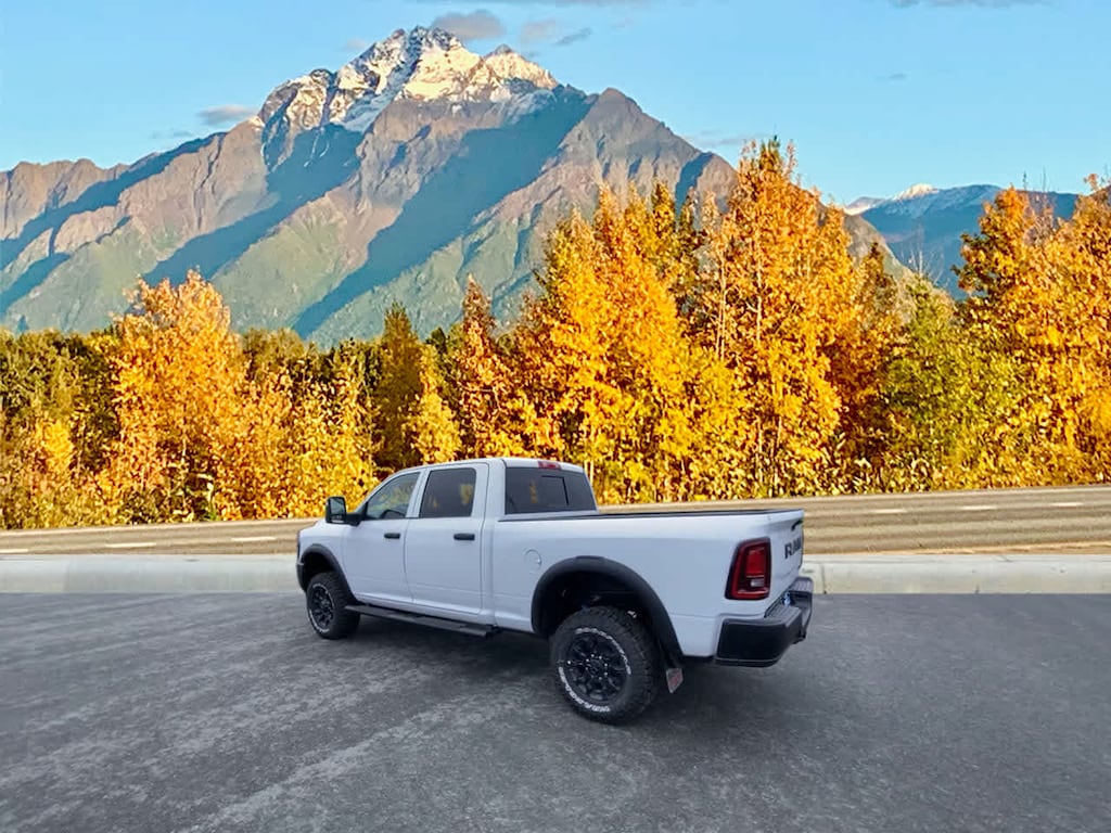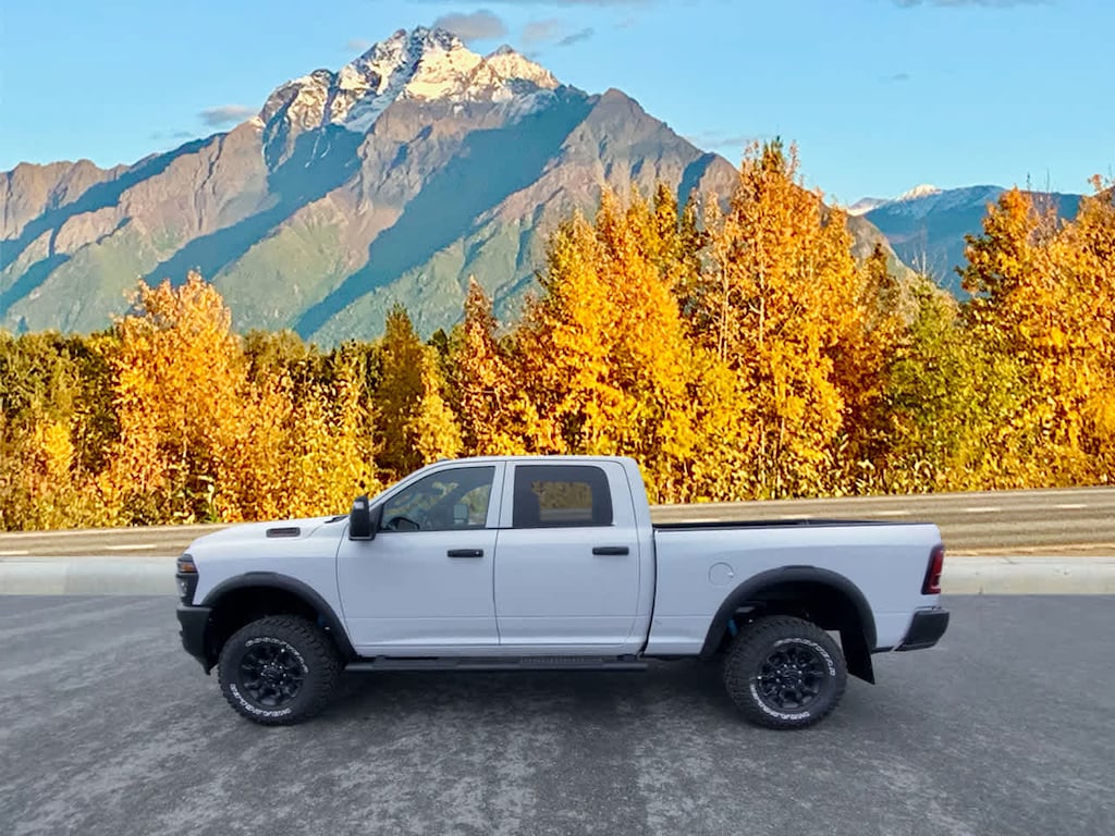 POWER WAGON PACKAGE Powder Coated Rear Bumper, RAM Articulink Suspension, Wheels: 17 x 8.0 Black Painted Aluminum, Front Electric Winch, Raised Ride Height, Tires: LT285/70R17D OWL AT, Rear Performance Tuned Shock Absorbers, Front Performance Tuned Shock Absorbers, GVWR: 8,565 lbs, Front Disconnecting Stabilizer Bar, Tru-Lok Front & Rear Axles, Base Engine Controller, Transfer Case Skid Plate Shield, Fuel Tank Skid Plate Shield, Goodyear Brand Tires, Black Wheel Flares, 4.10 Axle Ratio, Powder Coated Front Bumper, Hill Descent Control, ParkSense Front/Rear Park Assist System, Rear Wheelhouse Liners, TRADESMAN LEVEL 1 EQUIPMENT GROUP Convenience Group, Emergency Vehicle Alert System (EVAS), 12 Touchscreen Display, Exterior 115V AC Outlet, Alexa Built-In, Disassociated Touchscreen Display, 115V Auxiliary Front Power Outlet, Rear View Auto Dim Mirror, Rear Power Sliding Window, Tinted Acoustic Windshield Glass, GPS Navigation, SiriusXM w/360L, Connected Travel & Traffic Services, Off-Road Info Pages, Trailer Tow Pages, 400W Inverter, HD Radio, Radio: Uconnect 5 Nav w/12.0 Display, Air Conditioning ATC w/Dual Zone Control, MOPAR BLACK TUBULAR SIDE STEPS, BED CONVENIENCE GROUP MOPAR Spray In Bedliner, LED Bed Lighting, MOPAR FRONT & REAR RUBBER FLOOR MATS, TRANSMISSION: 8-SPEED AUTO (8HP75-LCV) (STD), ENGINE: 6.4L V8 HEMI HD (STD). Ram Tradesman with Bright White Clearcoat exterior and Diesel Gray/Black interior features a 8 Cylinder Engine with 405 HP at 5600 RPM*.