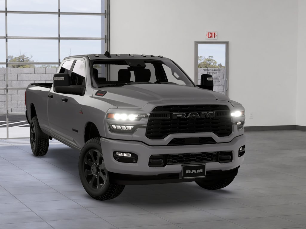 ENGINE: 6.7L I6 CUMMINS HO TURBO DIESEL Selective Catalytic Reduction (Urea), Dual 730 Amp Maintenance Free Batteries, Cummins Turbo Diesel Badge, Heavy Duty Engine Cooling, Diesel Exhaust Brake, Supplemental Heater, 3.42 Axle Ratio, Front Bumper Sight Shields, Capless Fuel Fill w/o Discriminator, GVWR: 11,040 lbs, BIG HORN LEVEL 1 PLUS EQUIPMENT GROUP Emergency Vehicle Alert System (EVAS), 12 Touchscreen Display, Glove Box Lamp, Auto Power-Folding Mirrors, Footwell Courtesy Lamp, Anti-Spin Differential Rear Axle, MOPAR Deployable Bed Step, Alexa Built-In, Forward & Reverse Utility Lights, Locking Lower Glove Box, Remote Start System, 9 Alpine Speakers w/Subwoofer, Disassociated Touchscreen Display, Dual Glove Boxes, 2nd Row In Floor Storage Bins, Rear View Auto Dim Mirror, Rear Dome w/On/Off Switch Lamp, LED Bed Lighting, GPS Navigation, SiriusXM w/360L, Connected Travel & Traffic Services, Foam Bottle Insert (Door Trim Panel), Big Horn IP Badge, Off-Road Info Pages, Trailer Tow Pages, HD Radio, Radio: Uconnect 5 Nav w/12.0 Display, Power Heated Folding Telescopic Mirrors, Steering Wheel Mounted, NIGHT EDITION Gloss Black Nostrils/Mic Black Grille, Tires: LT285/60R20E OWL On/Off Road, Black Exterior Truck Badging, Wheels: 20 x 8.0 Black Painted Aluminum, Body Color Grille-Surround, Black Interior Accents, Black Wheel Center Hub, Painted Front Bumper, Painted Rear Bumper, HEATED SEATS & WHEEL GROUP Heated Steering Wheel, Heated Front Seats, BLACK, PREMIUM CLOTH BUCKET SEATS Bucket Seats, Power Adjust 8-Way Driver Seat, Folding Flat Load Floor Storage, Rear 60/40 Folding Seat, Front Seat Back Map Pockets, Power 2-Way Driver Lumbar Adjust, Full Length Upgraded Floor Console, TRANSMISSION: 8-SPEED TORQUEFLITE HD AUTOMATIC. Ram Big Horn with Ceramic Gray Clearcoat exterior and Black interior features a Straight 6 Cylinder Engine with 430 HP at 2800 RPM*.
