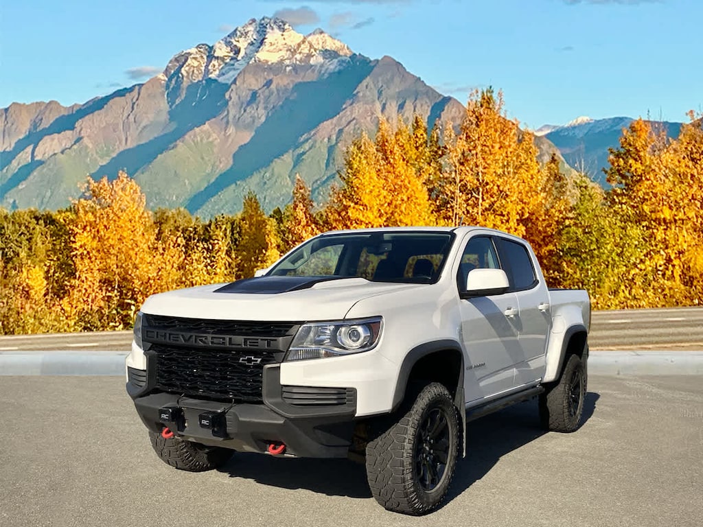 ZR2 DUSK SPECIAL EDITION includes (RIF) 17 x 8 Gloss-Black aluminum wheels, (S3X) Off-road lights, LPO, (SCU) Off-road sport bar, LPO and (S4S) 17 x 8 Gloss-Black aluminum spare wheel, AUDIO SYSTEM, CHEVROLET INFOTAINMENT 3 PLUS SYSTEM 8 diagonal HD color touchscreen, AM/FM stereo, Bluetooth® audio streaming for 2 active devices, Apple CarPlay® and Android Auto® capable, voice recognition, in-vehicle apps, cloud connected personalization for select infotainment and vehicle settings. Subscription required for enhanced and connected services after trial period (STD), ENGINE, 3.6L DI DOHC V6 VVT (308 hp [230.0 kW] @ 6800 rpm, 275 lb-ft of torque [373 N-m] @ 4000 rpm) (STD), TRANSMISSION, 8-SPEED AUTOMATIC (STD). Chevrolet 4WD ZR2 with SUMMIT WHITE exterior and JET BLACK LEATHER-APPOINTED FRONT SEATS interior features a V6 Cylinder Engine with 308 HP at 6800 RPM*.