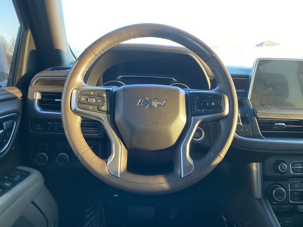 LUXURY PACKAGE includes (WPD) Driver Alert Package content, (UV2) HD Surround Vision, (UKK) Rear Pedestrian Alert, (A45) memory settings, (DXR) outside heated power-adjustable, power-folding, body-color mirrors with driver-side auto-dimming and integrated turn signal indicators, (N38) power tilt and telescopic steering column, (KI3) automatic heated steering wheel, (KA6) second row outboard heated seats, (ATT) second row power 60/40 split-folding bench seats and (AS8) third row power 60/40 split-folding bench seats, SEATS, SECOND ROW BUCKET, POWER RELEASE, AUDIO SYSTEM, CHEVROLET INFOTAINMENT 3 PLUS SYSTEM, 10.2 DIAGONAL HD COLOR TOUCHSCREEN AM/FM stereo, Bluetooth® audio streaming for 2 active devices, Apple CarPlay® and Android Auto® capable, enhanced voice recognition, in-vehicle apps, cloud connected personalization for select infotainment and vehicle settings. Subscription required for enhanced and connected services after trial period. (STD), ENGINE, 5.3L ECOTEC3 V8 with Dynamic Fuel Management, Direct Injection and Variable Valve Timing, includes aluminum block construction (355 hp [265 kW] @ 5600 rpm, 383 lb-ft of torque [518 Nm] @ 4100 rpm) (STD), TRANSMISSION, 10-SPEED AUTOMATIC electronically controlled with overdrive, includes Traction Select System including tow/haul (Most vehicles built on or after 6-7-2021 with a V8 engine will have (NSS) Not Equipped with Automatic Stop/Start, which removes Automatic Stop/Start, Engine control stop/start disable button and its content.) (STD), DRIVER ALERT PACKAGE includes (UHX) Lane Keep Assist with Lane Departure Warning, (UKC) Lane Change Alert with Side Blind Zone Alert, (UFG) Rear Cross Traffic Alert and (UD5) Front and Rear Park Assist. Chevrolet Z71 with Summit White exterior and Gideon/Very Dark Atmosphere interior features a 8 Cylinder Engine with 355 HP at 5600 RPM*.