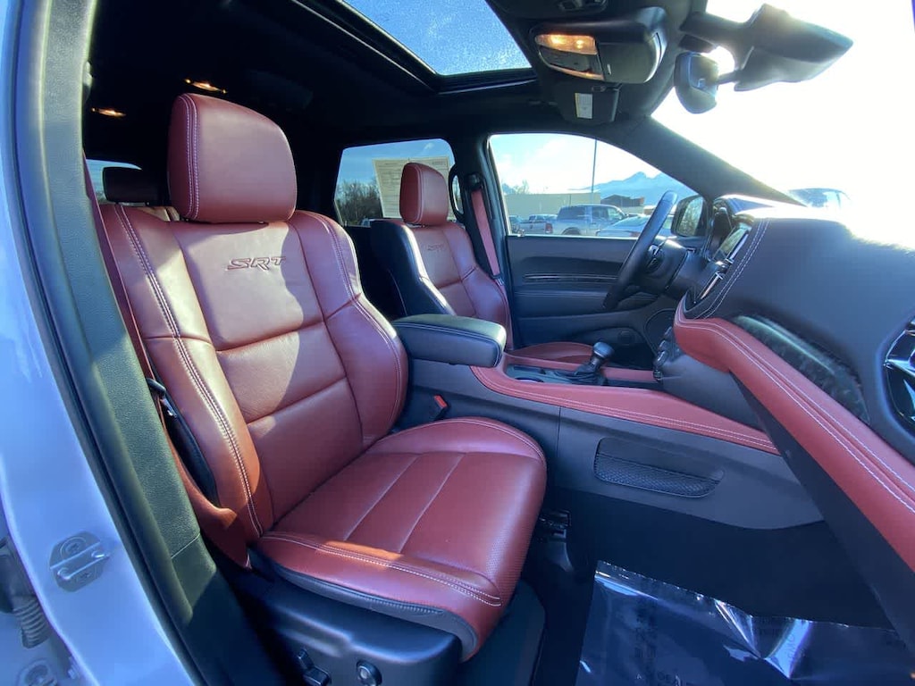 QUICK ORDER PACKAGE 29N SRT 392 PREMIUM Engine: 6.4L V8 SRT HEMI MDS, Transmission: 8-Speed Automatic (8HP70), Advanced Brake Assist, 2 Pc Brembo Front Rotor Brakes, Suede Headliner, 3rd Row Floor Mat & Full Console, 7 & 4 Pin Wiring Harness, Integrated Roof Rail Crossbars, 12V Auxiliary Power Outlet In Console, Illuminated Rear Cupholders, Red Seat Belts, Premium Instrument Panel, Full Speed Forward Collision Warning Plus, Power Sunroof, 19 harman/kardon® Amplified Speakers w/Subwoofer, Trailer Brake Control, 1 USB Charging Port in Console, 825 Watt Amplifier, Adaptive Cruise Control w/Stop, Black Roof Rails, Class IV Receiver Hitch, Forged Carbon Fiber Interior Accents, 2nd Row Console w/Armrest & Storage, Blind Spot w/Trailer Detection, Lane Departure Warning Plus, BLACK PACKAGE Gray Metallic Badges, Satin Black Dodge Tail Lamp Badge, Wheels: 20 x 10 Lights Out Aluminum, Eclipse Black Exhaust Tips, TRANSMISSION: 8-SPEED AUTOMATIC (8HP70) (STD), ENGINE: 6.4L V8 SRT HEMI MDS (STD). Dodge SRT 392 Premium with White Knuckle Clearcoat exterior and Demonic Red/Black interior features a 8 Cylinder Engine with 475 HP at 6100 RPM*.