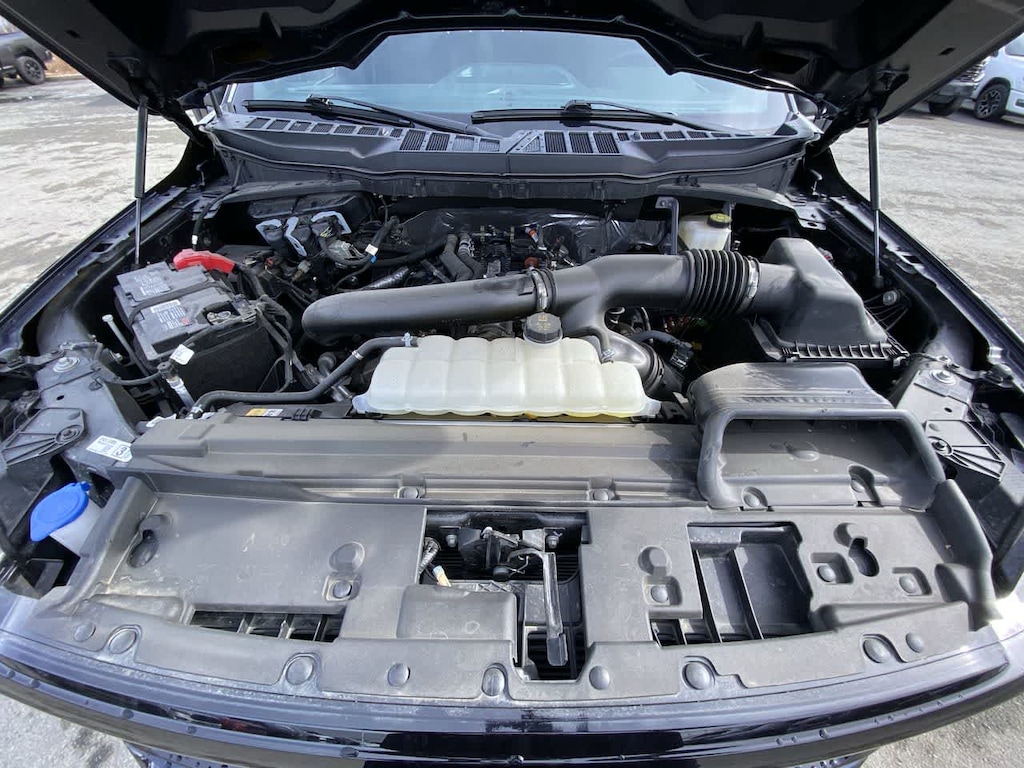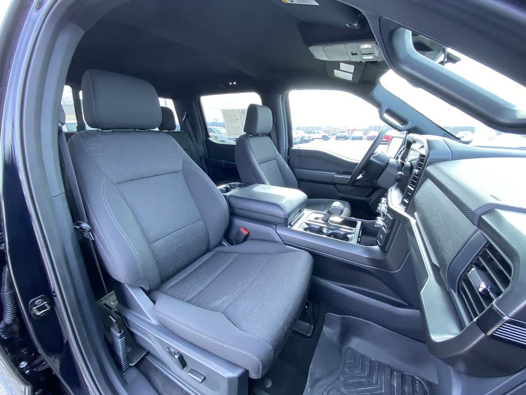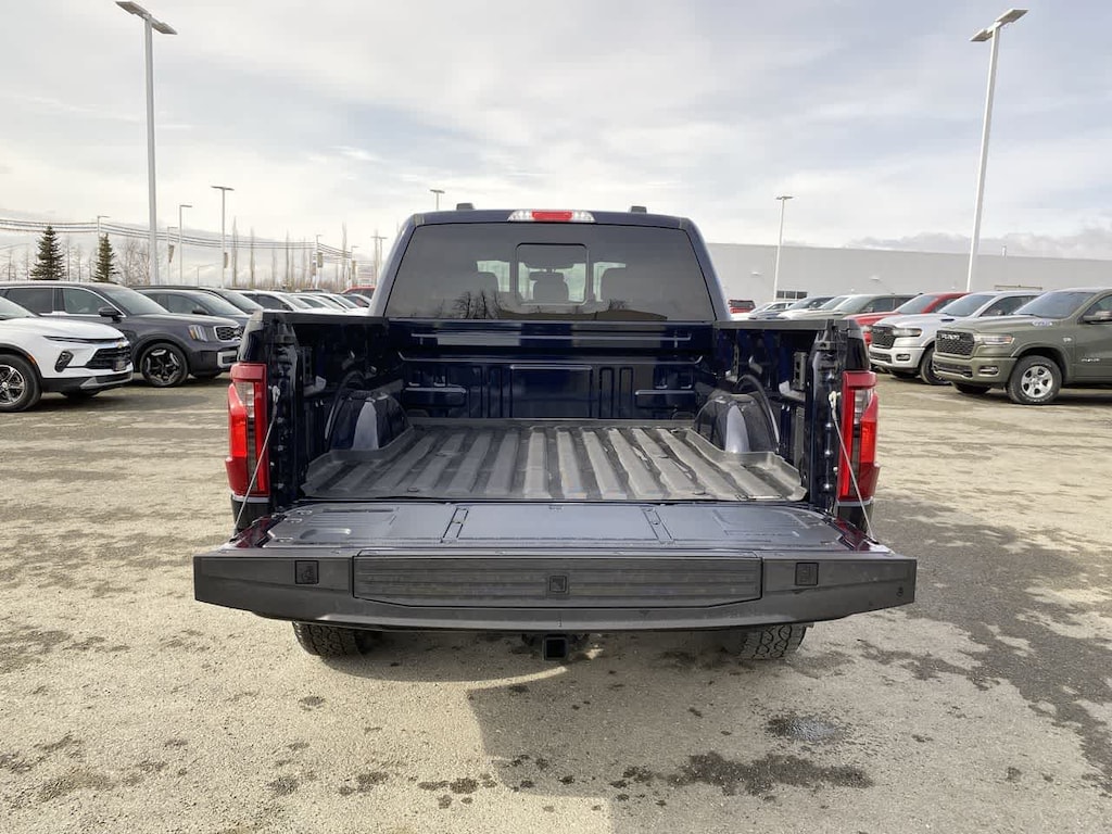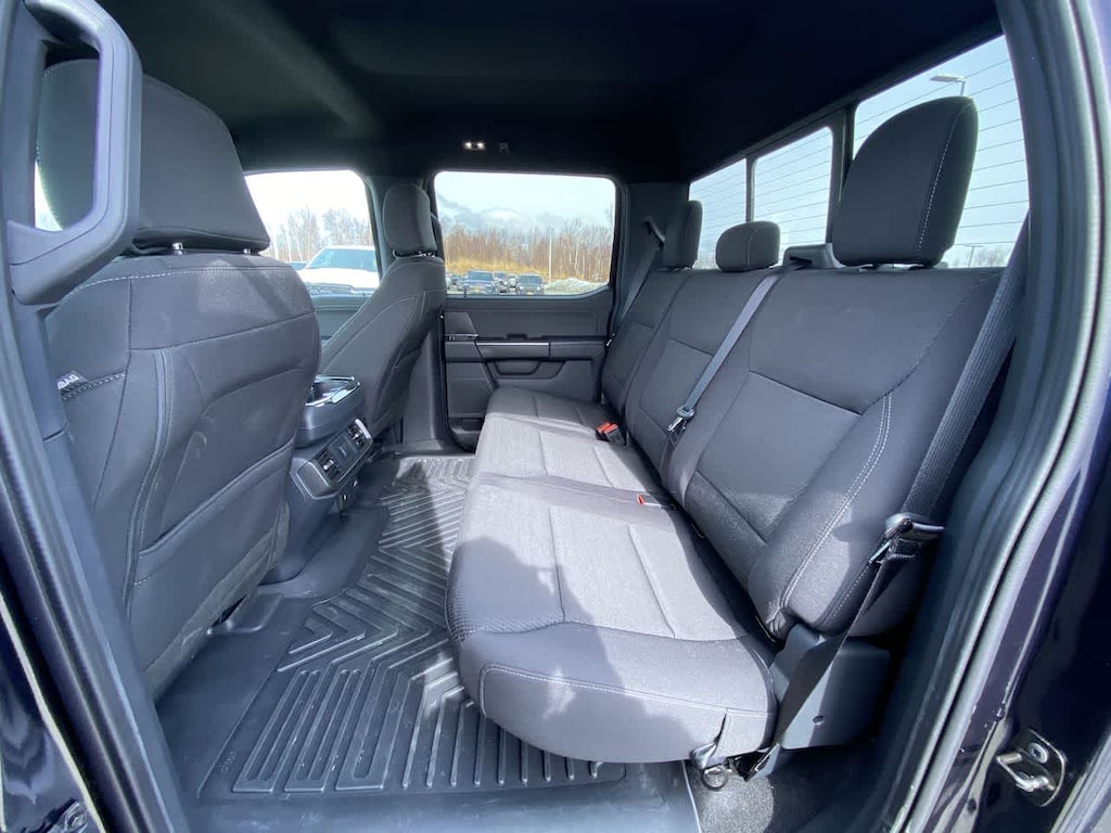 EQUIPMENT GROUP 302A MID Adaptive Cruise Control w/Stop & Go, lane centering, Speed Sign Recognition, Intelligent Access w/Push Button Start, approach detection, 400W Cab & Bed Outlets, Ford BlueCruise Equipped (90-Day Trial), See ford.com/bluecruise for version details, Power-Sliding Rear Window, Remote Start System w/Remote Tailgate Release, Heated Front Seats, Power Glass Heated Sideview Mirrors, manual folding, turn signals, high-intensity LED security approach lamps, LED sideview mirror spotlights and chrome skull caps, Auto-Dimming Rearview Mirror, ENGINE: 3.5L V6 ECOBOOST auto start-stop technology, GVWR: 7,100 lbs Payload Package, BED UTILITY PACKAGE Tailgate Step w/Tailgate Work Surface, LED Box Lighting, 4 Pickup Box Tie-Down Plates, XLT BLACK APPEARANCE PACKAGE Black Grille, Gray Box Side Decal, Black Exterior Badging, 6 Black Running Boards, Wheels: 18 Gloss Black, Body-Color Front & Rear Bumpers, Dark Interior Appliques, Floor Shifter, MAX TOW ELECTRONIC LOCKING W/3.55 AXLE RATIO, TRANSMISSION: ELECTRONIC 10-SPEED AUTOMATIC SelectShift w/progressive range select and selectable drive modes: normal, ECO, sport, tow/haul, slippery, deep snow/sand and mud/rut (STD). Ford XLT with Antimatter Blue exterior and Black interior features a V6 Cylinder Engine with 325 HP at 5500 RPM*.