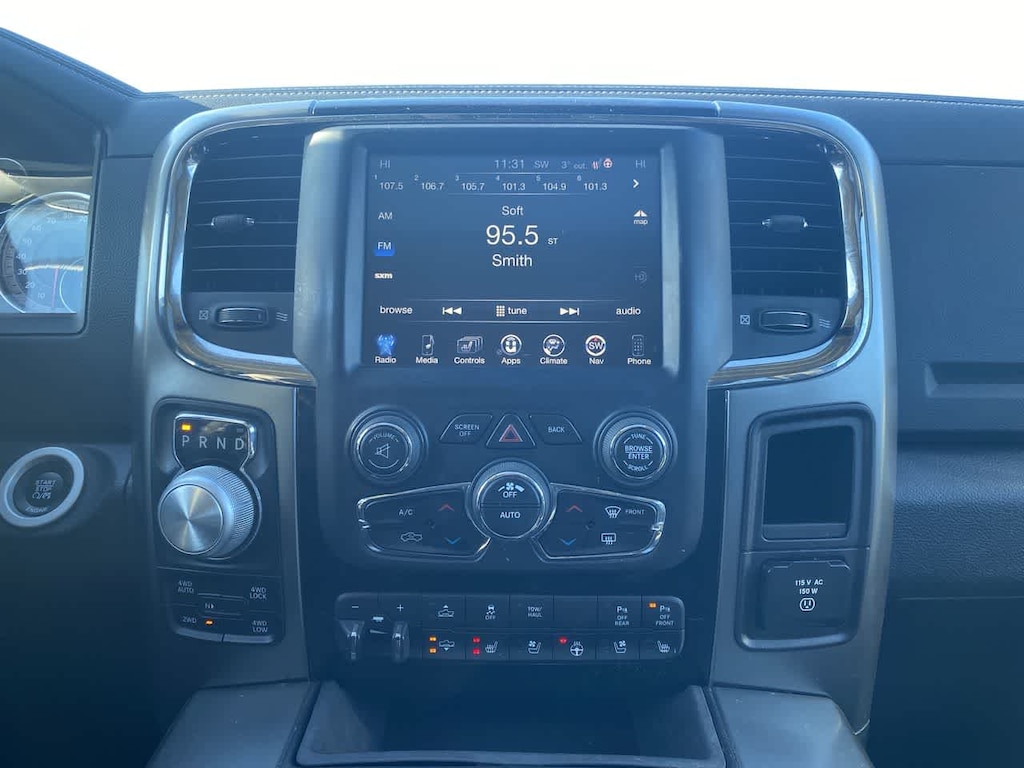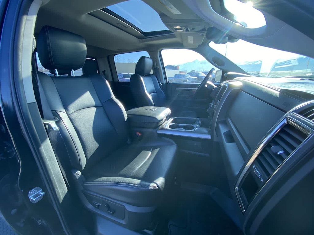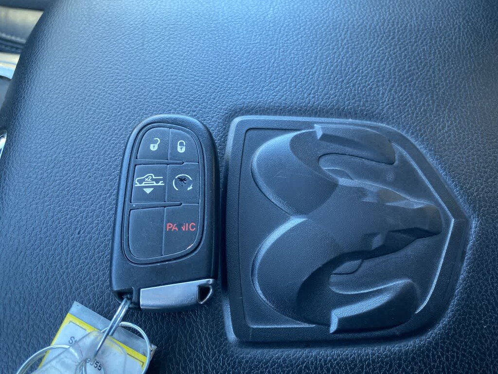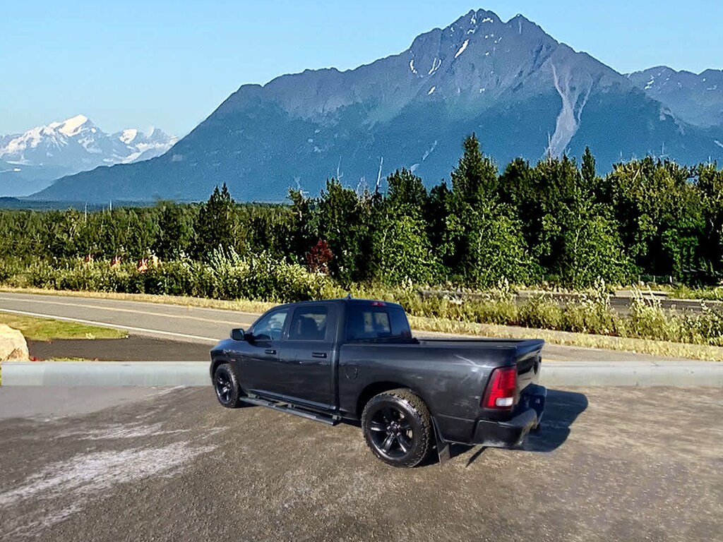 4-CORNER AIR SUSPENSION, BLACK RAM 1500 SPORT GROUP Wheels: 20 x 9 Semi-Gloss Black Aluminum, Body Color/Bright Billets Grille, 9 Alpine Speakers w/Subwoofer, Flat Black 5.7L Hemi Badge, Black Ram Head Tailgate Badge, 4x4 Flat Black Badge, Sport Performance Hood, Flat Black Ram 1500 Badge, Air Conditioning ATC w/Dual Zone Control, Bi-Function Halogen Projector Headlamps, Tires: P275/60R20 BSW AS, BLACK, LEATHER TRIMMED BUCKET SEATS Power 10-Way Driver & 6-Way Passenger Seats, Heated Front Seats, Ventilated Front Seats, POWER SUNROOF, RADIO: UCONNECT 8.4 NAV Uconnect Access, HD Radio, (Registration Required), GPS Navigation, SiriusXM Travel Link, SIRIUSXM Traffic, 1 Year Sirius Real Time Traffic Service, CONVENIENCE GROUP Keyless GO®, Remote Proximity Keyless Entry, Auto High Beam Headlamp Control, Rain Sensitive Windshield Wipers, BLACK TUBULAR SIDE STEPS, REMOTE START & SECURITY ALARM GROUP Remote Start System, Security Alarm, ANTI-SPIN DIFFERENTIAL REAR AXLE, PARKSENSE FRONT/REAR PARK ASSIST SYSTEM, CLASS IV RECEIVER HITCH, TRANSMISSION: 8-SPEED AUTOMATIC (8HP70) (STD), ENGINE: 5.7L V8 HEMI MDS VVT (STD). Ram Sport with Brilliant Black Crystal Pearlcoat exterior and Black interior features a 8 Cylinder Engine with 395 HP at 5600 RPM*.