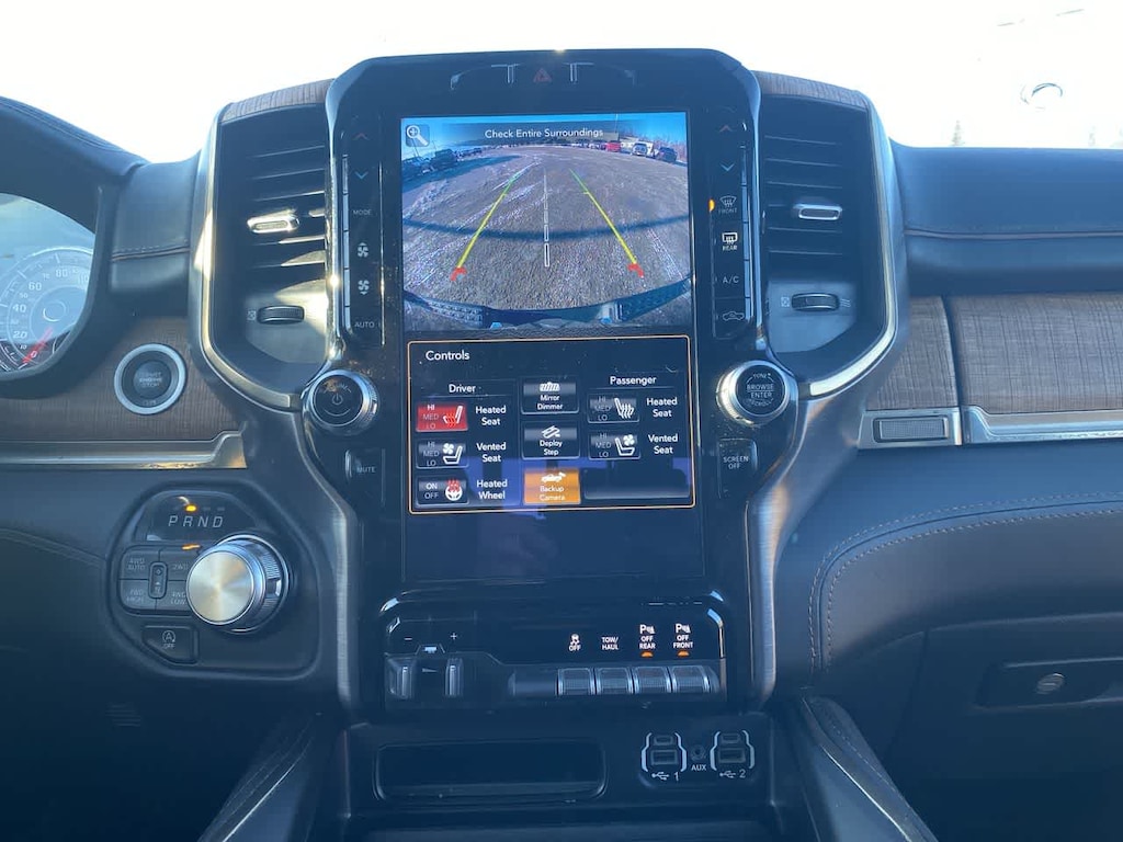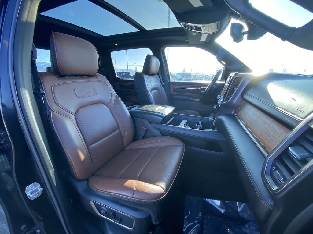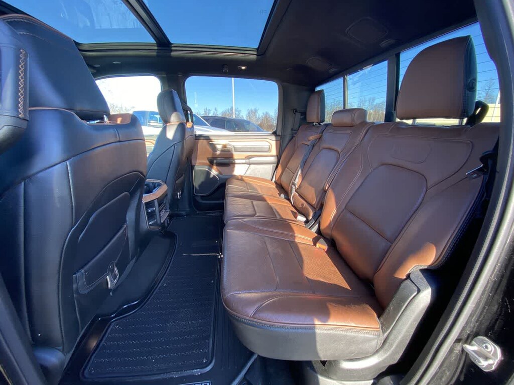 LONGHORN LEVEL 1 EQUIPMENT GROUP harman/kardon® 19 Speaker Premium Sound, Power Running Boards, Blind Spot & Cross Path Detection, Wireless Charging Pad, Foam Bottle Insert (Door Trim Panel), Ventilated Rear Seats, Radio: Uconnect 12 w/Navigation, USB Host Flip, 12 Touchscreen Display, SiriusXM w/360L, No Satellite Coverage w/HI/AK/PR/VI/GU, ENGINE: 5.7L V8 HEMI MDS VVT ETORQUE Active Noise Control System, Heavy Duty Engine Cooling, GVWR: 7,100 lbs, Dual Rear Exhaust w/Bright Tips, Hemi Badge, 18 Aluminum Spare Wheel, DUAL-PANE PANORAMIC SUNROOF LED Dome/Reading Lamp, Dome Dual LED Reading Lamp, ANTI-SPIN DIFFERENTIAL REAR AXLE, TRANSMISSION: 8-SPEED AUTOMATIC (8HP75). Ram Longhorn with Diamond Black Crystal Pearlcoat exterior and New Saddle/Black interior features a 8 Cylinder Engine with 305 HP at 6400 RPM*.