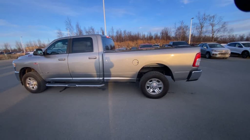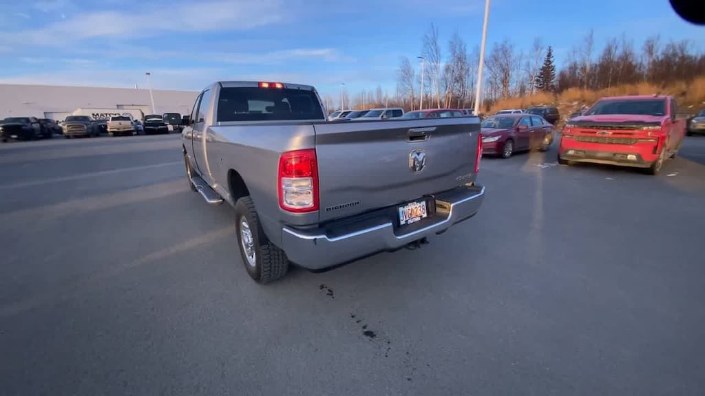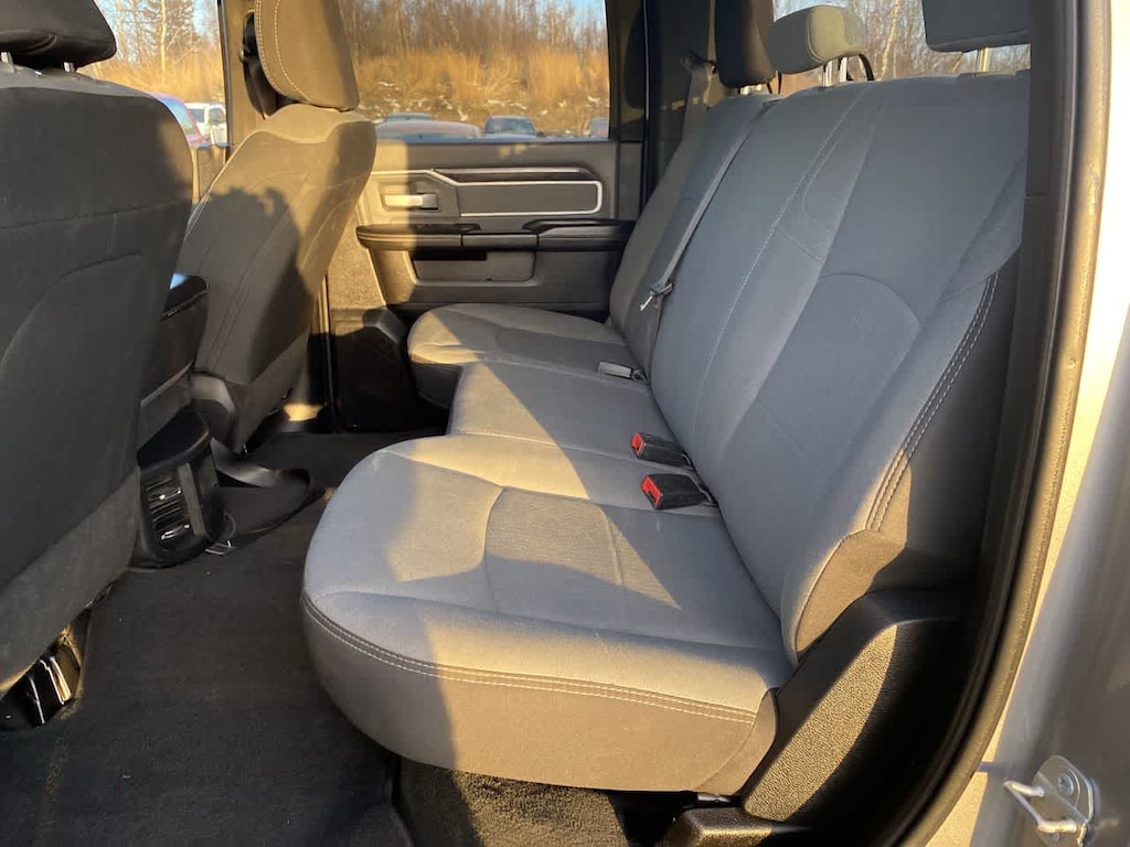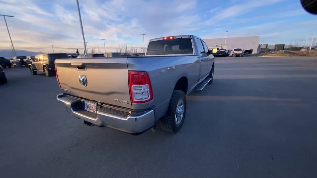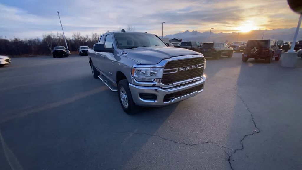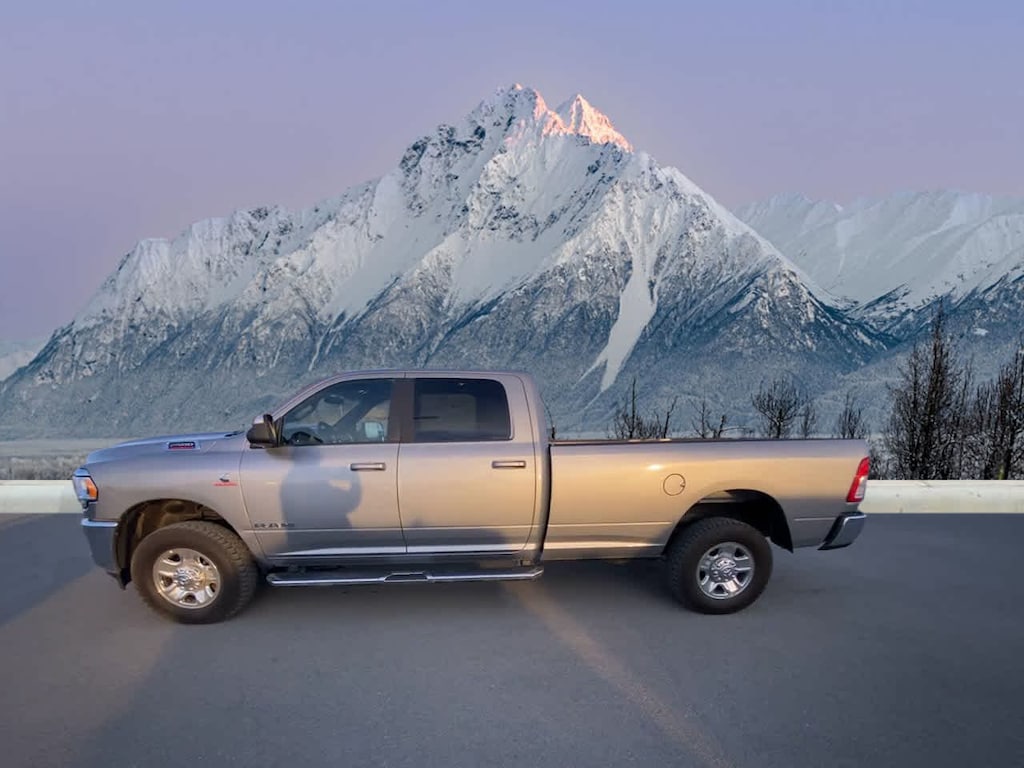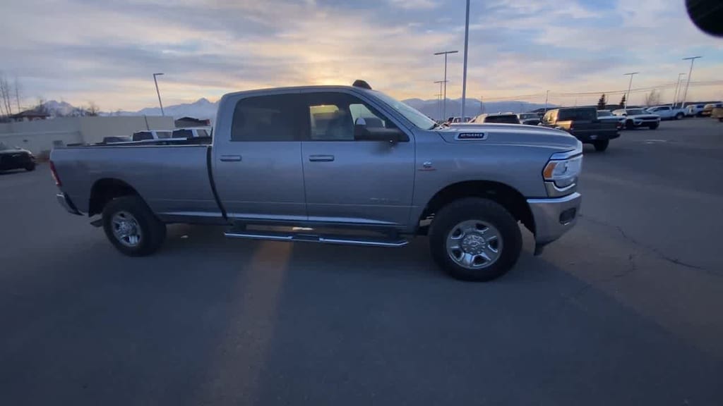 ENGINE: 6.7L I6 CUMMINS TURBO DIESEL Selective Catalytic Reduction (Urea), Dual 730 Amp Maintenance Free Batteries, Cummins Turbo Diesel Badge, Heavy Duty Engine Cooling, Supplemental Heater, Tow Hooks, Diesel Exhaust Brake, Front Bumper Sight Shields, Capless Fuel Fill w/o Discriminator, Distribution Services Tracking, CHROME FLAT CAB-LENGTH SIDE STEPS, TRANSMISSION: 6-SPEED AUTOMATIC (68RFE) Chrome Accent Shift Control. Ram Big Horn with Billet Silver Metallic Clearcoat exterior and Diesel Gray/Black interior features a Straight 6 Cylinder Engine with 370 HP at 2800 RPM*.