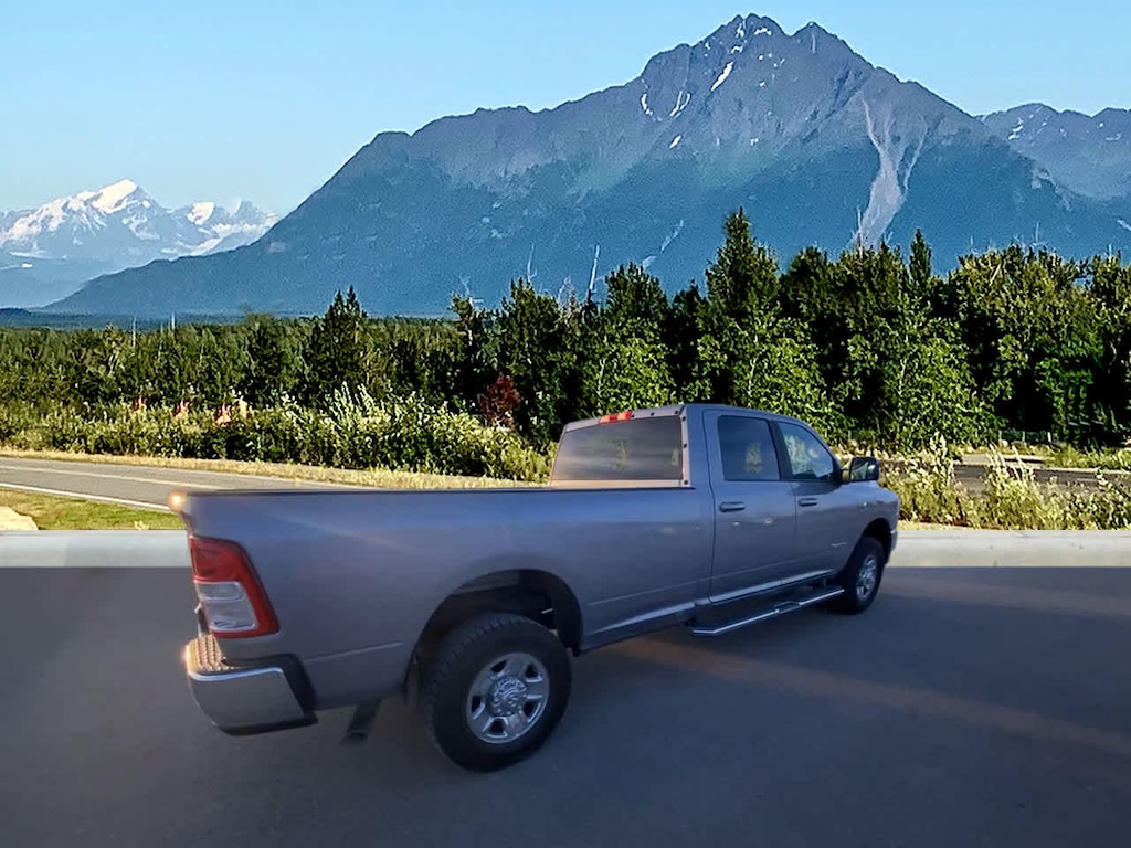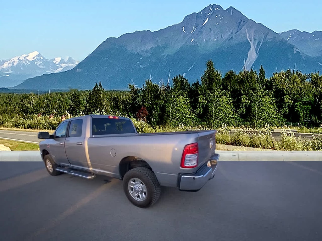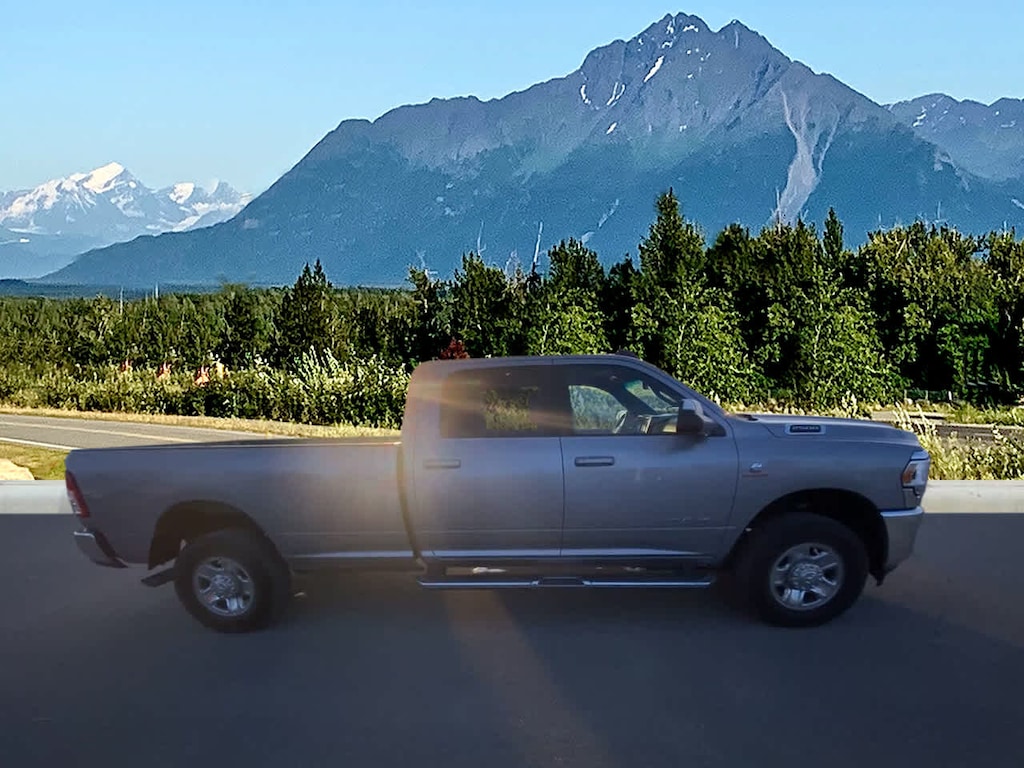 CHROME FLAT CAB-LENGTH SIDE STEPS, TRANSMISSION: 6-SPEED AUTOMATIC (68RFE) Chrome Accent Shift Control. Ram Big Horn with Billet Silver Metallic Clearcoat exterior and Diesel Gray/Black interior features a Straight 6 Cylinder Engine with 410 HP at 5600 RPM*.