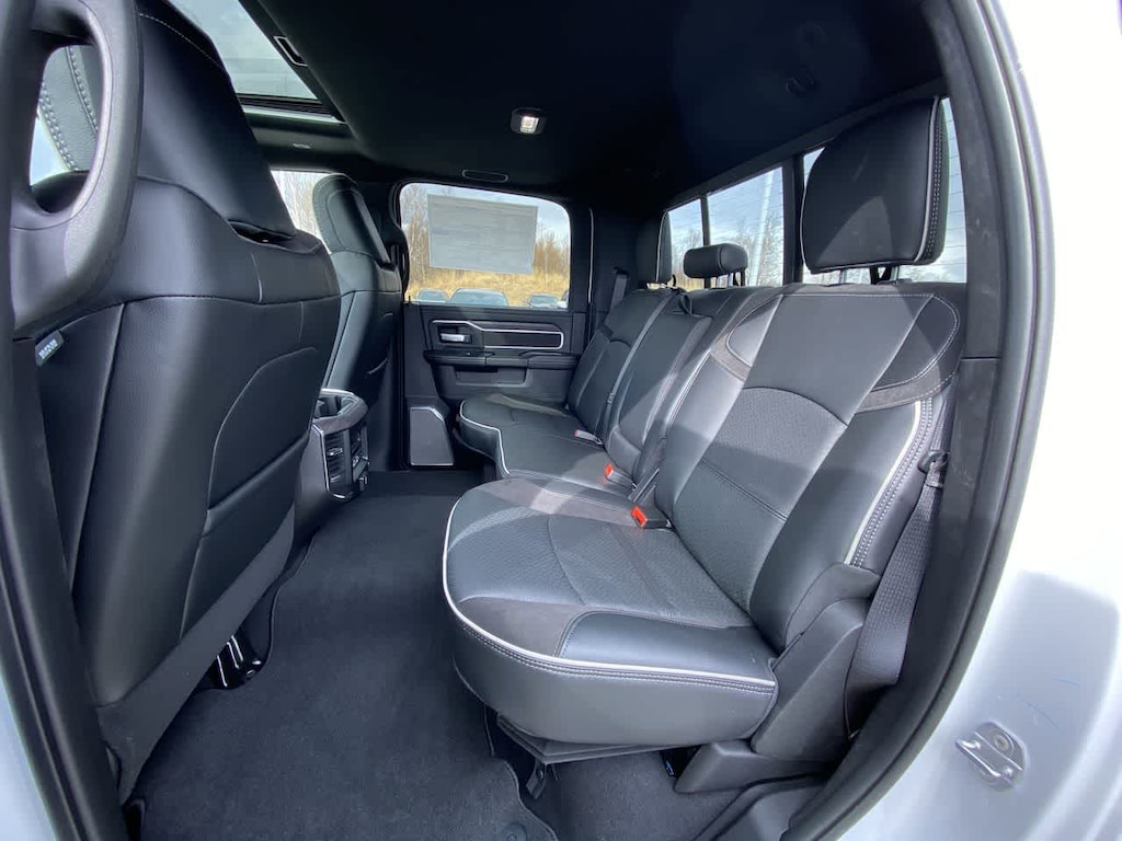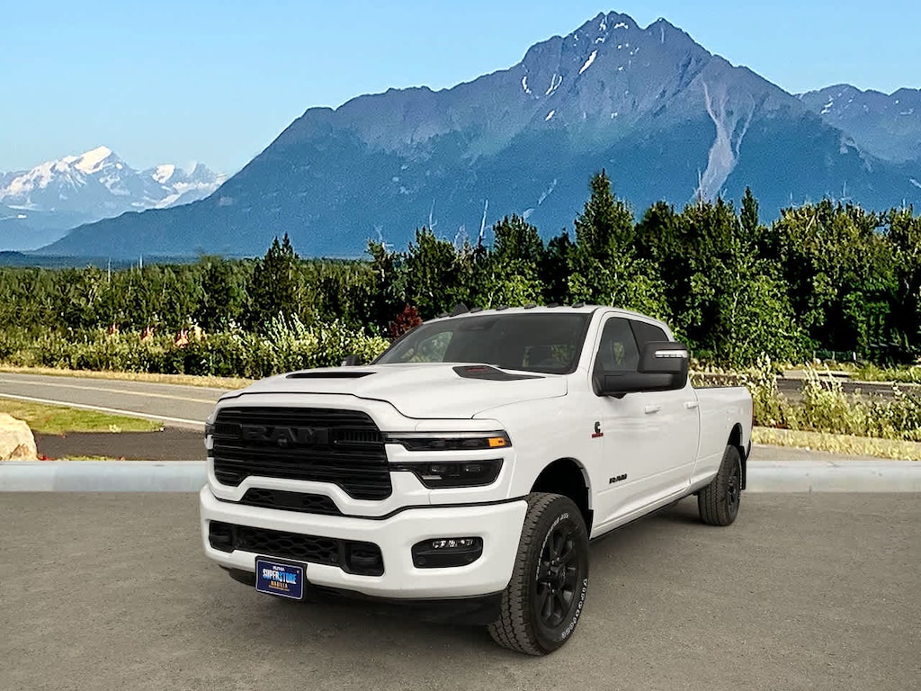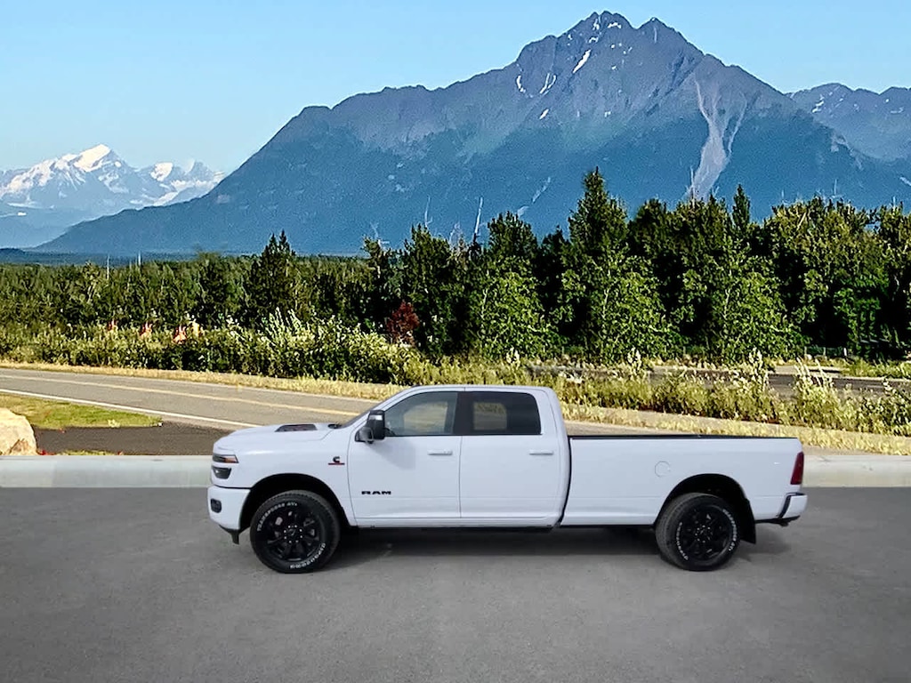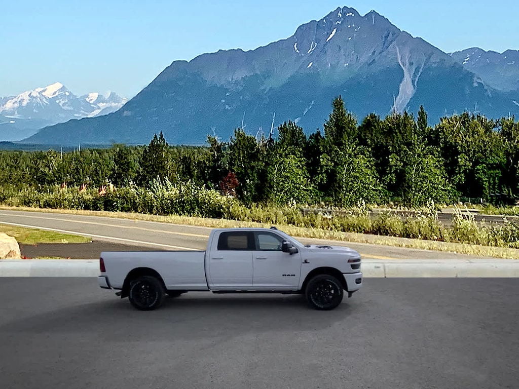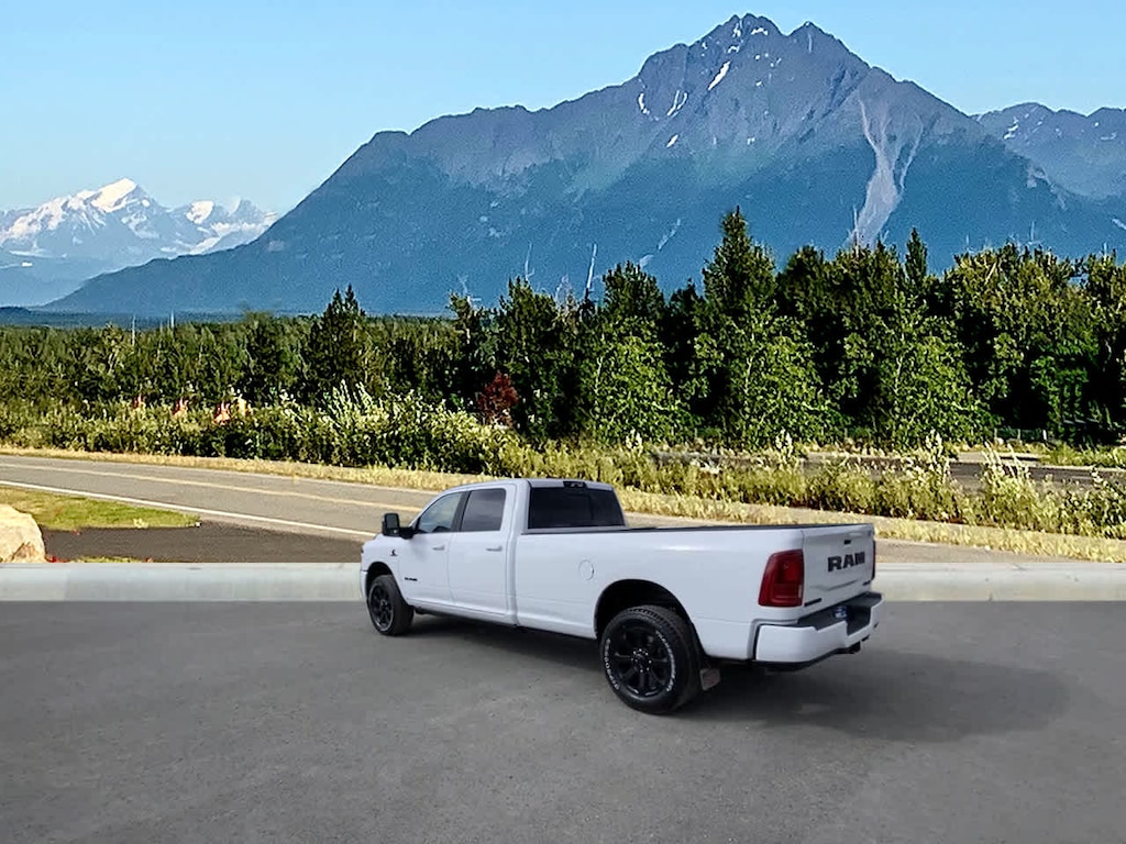 ENGINE: 6.7L I6 CUMMINS HO TURBO DIESEL Selective Catalytic Reduction (Urea), Dual 730 Amp Maintenance Free Batteries, Cummins Turbo Diesel Badge, Heavy Duty Engine Cooling, Diesel Exhaust Brake, Supplemental Heater, 3.42 Axle Ratio, Front Bumper Sight Shields, Capless Fuel Fill w/o Discriminator, GVWR: 11,040 lbs, LARAMIE LEVEL 2 PLUS EQUIPMENT GROUP Power Adjustable Pedals w/Memory, Power Deployable Running Boards, Auto Power-Folding Mirrors, Anti-Spin Differential Rear Axle, Drowsy Driver Detection, MOPAR Deployable Bed Step, Active Lane Management System, Remote Tailgate Release, 17 Speaker harman/kardon® Premium Sound, 2nd Row In Floor Storage Bins, CTR Stop Lamp w/Cargo View Camera, Rain Sensitive Windshield Wipers, LED Bed Lighting, Traffic Sign Recognition, GPS Navigation, Adaptive Steering System, Auto Dim Exterior Mirror, SiriusXM w/360L, Foam Bottle Insert (Door Trim Panel), Off-Road Info Pages, Trailer Tow Pages, 14.4 Touchscreen Display, Power Heated Fold Telescopic Mirrors w/Memory, Radio: Uconnect 5 Nav w/14.4 Display, MOPAR Spray In Bedliner, Auto High Beam Headlamp Control, Chrome, NIGHT EDITION Tires: LT285/60R20E OWL On/Off Road, Black Exterior Truck Badging, Wheels: 20 x 8.0 Black Painted Aluminum, Gloss Black Grille Billets/Accents, Body Color Grille Surround, Sport Performance Hood, Black Exterior Mirrors, TOWING TECHNOLOGY GROUP CTR Stop Lamp w/Cargo View Camera, Surround View Camera System, Trailer Tire Pressure Monitoring System, Trailer Reverse Guidance, AUTO LEVEL REAR AIR SUSPENSION, POWER SUNROOF, TRANSMISSION: 8-SPEED TORQUEFLITE HD AUTOMATIC, BLACK, LEATHER TRIMMED BUCKET SEATS Bucket Seats, Dual Wireless Charging Pad, #1 Seat Foam Cushion, Full Length Upgraded Floor Console. Ram Laramie with Bright White Clearcoat exterior and Black interior features a Straight 6 Cylinder Engine with 430 HP at 2800 RPM*.