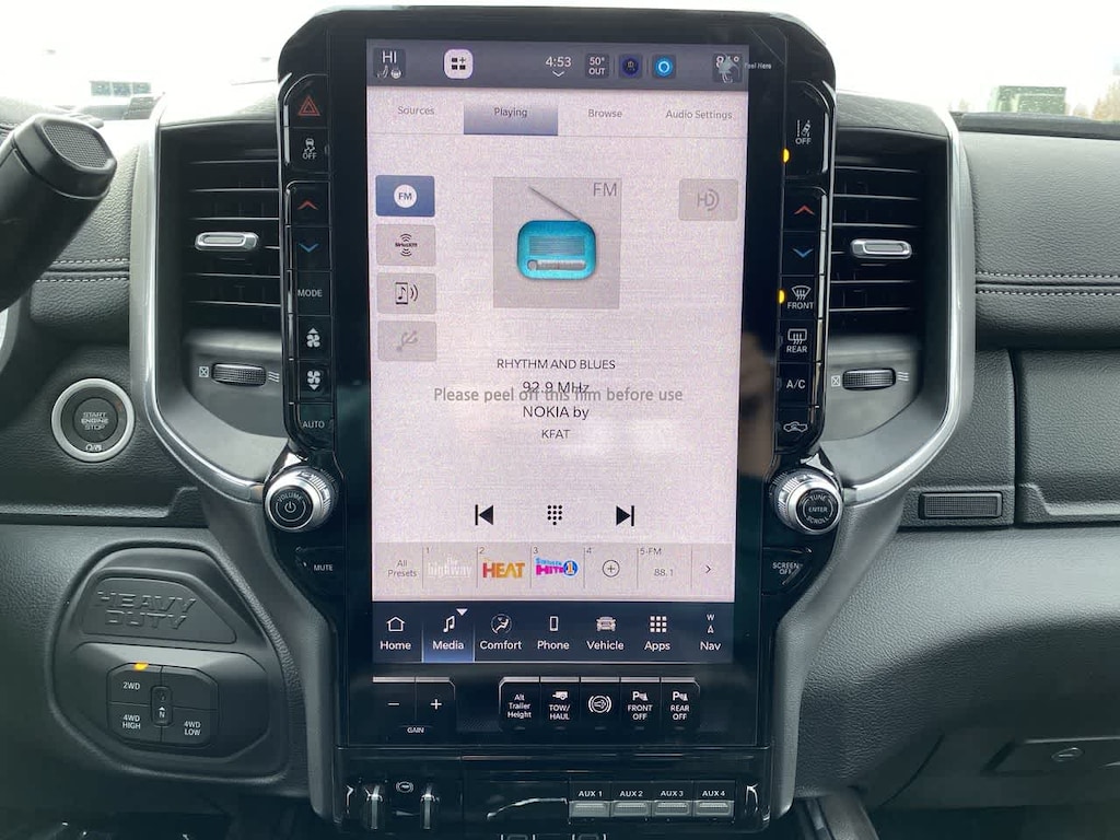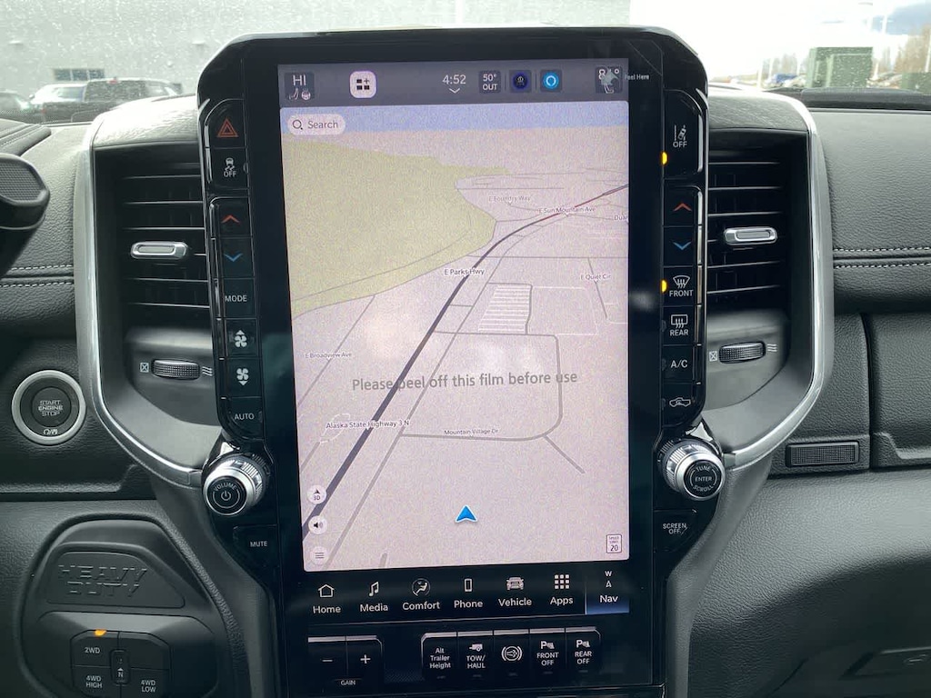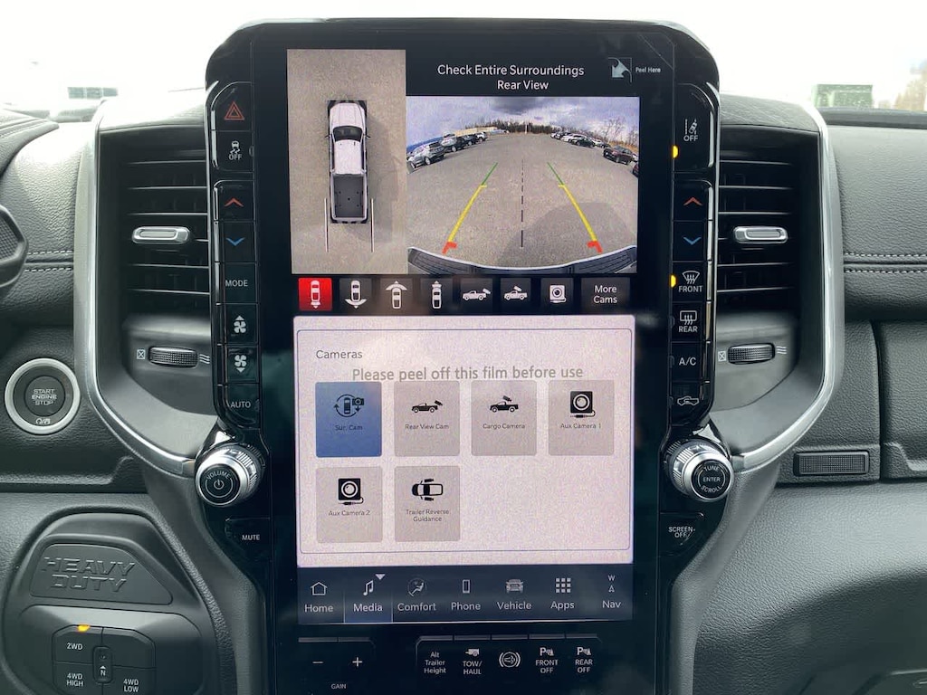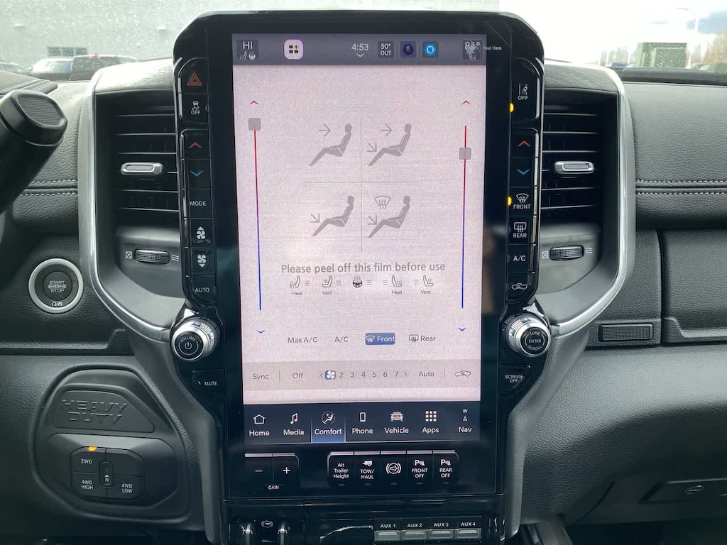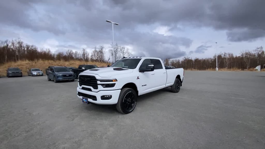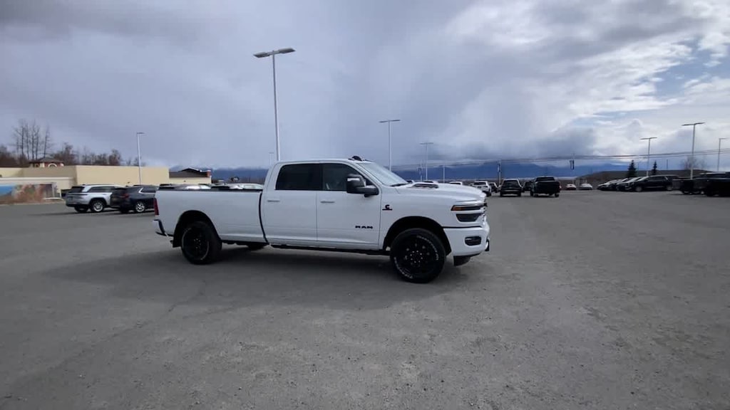 ENGINE: 6.7L I6 CUMMINS HO TURBO DIESEL Selective Catalytic Reduction (Urea), Dual 730 Amp Maintenance Free Batteries, Cummins Turbo Diesel Badge, Heavy Duty Engine Cooling, Diesel Exhaust Brake, Supplemental Heater, 3.42 Axle Ratio, Front Bumper Sight Shields, Capless Fuel Fill w/o Discriminator, GVWR: 11,040 lbs, LARAMIE LEVEL 2 PLUS EQUIPMENT GROUP Power Adjustable Pedals w/Memory, Power Deployable Running Boards, Auto Power-Folding Mirrors, Anti-Spin Differential Rear Axle, Drowsy Driver Detection, MOPAR Deployable Bed Step, Active Lane Management System, Remote Tailgate Release, 17 Speaker harman/kardon® Premium Sound, 2nd Row In Floor Storage Bins, CTR Stop Lamp w/Cargo View Camera, Rain Sensitive Windshield Wipers, LED Bed Lighting, Traffic Sign Recognition, GPS Navigation, Adaptive Steering System, Auto Dim Exterior Mirror, SiriusXM w/360L, Foam Bottle Insert (Door Trim Panel), Off-Road Info Pages, Trailer Tow Pages, 14.4 Touchscreen Display, Power Heated Fold Telescopic Mirrors w/Memory, Radio: Uconnect 5 Nav w/14.4 Display, MOPAR Spray In Bedliner, Auto High Beam Headlamp Control, Chrome, NIGHT EDITION Tires: LT285/60R20E OWL On/Off Road, Black Exterior Truck Badging, Wheels: 20 x 8.0 Black Painted Aluminum, Gloss Black Grille Billets/Accents, Body Color Grille Surround, Sport Performance Hood, Black Exterior Mirrors, TOWING TECHNOLOGY GROUP CTR Stop Lamp w/Cargo View Camera, Surround View Camera System, Trailer Tire Pressure Monitoring System, Trailer Reverse Guidance, AUTO LEVEL REAR AIR SUSPENSION, POWER SUNROOF, TRANSMISSION: 8-SPEED TORQUEFLITE HD AUTOMATIC, BLACK, LEATHER TRIMMED BUCKET SEATS Bucket Seats, Dual Wireless Charging Pad, #1 Seat Foam Cushion, Full Length Upgraded Floor Console. Ram Laramie with Bright White Clearcoat exterior and Black interior features a Straight 6 Cylinder Engine with 430 HP at 2800 RPM*.